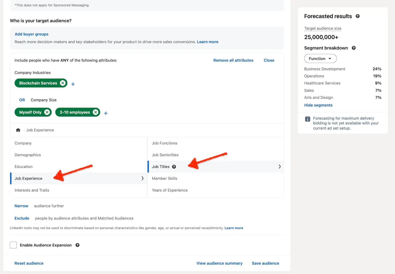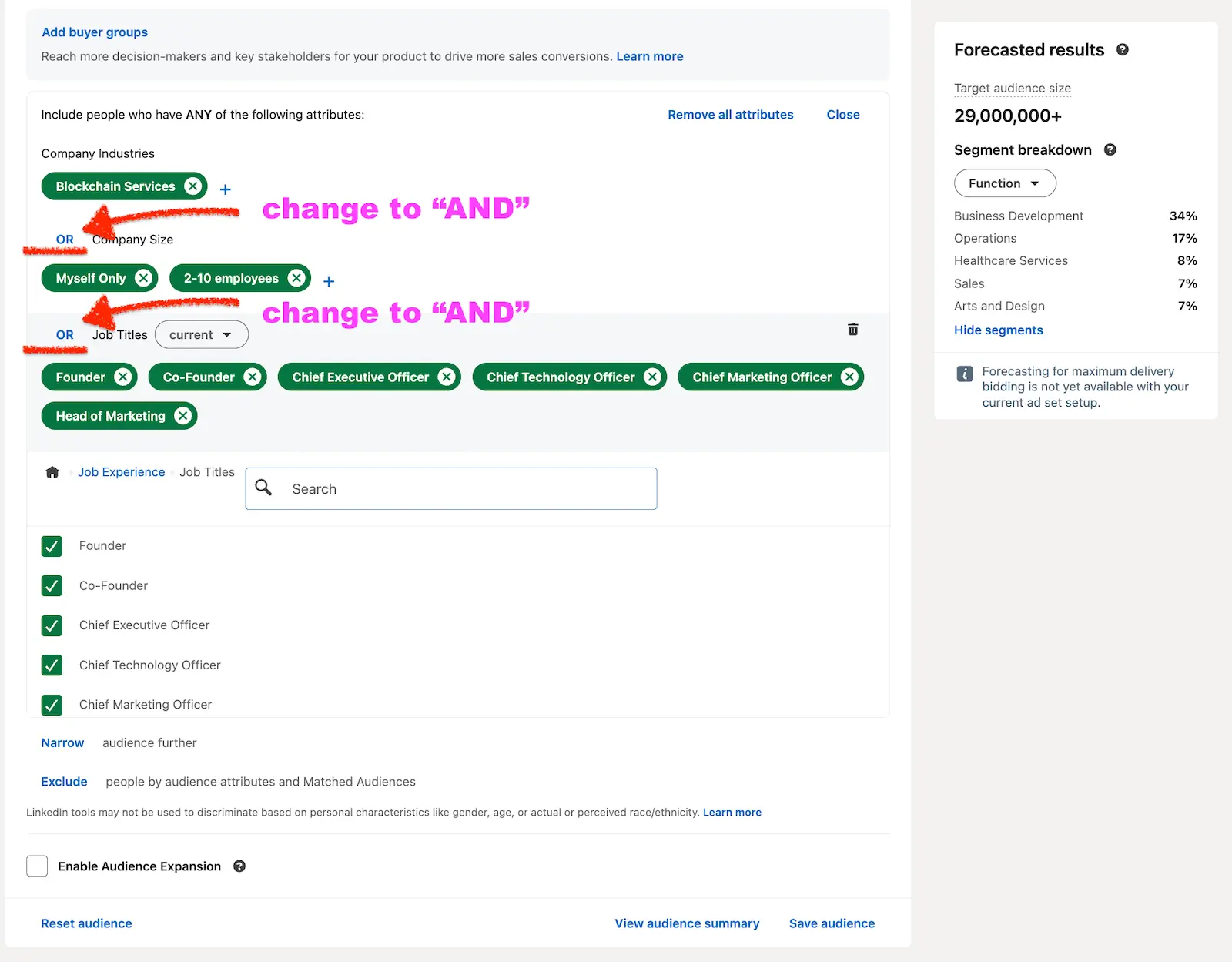 LinkedIn ads crypto targeting: use Blockchain Services without OR mistakes